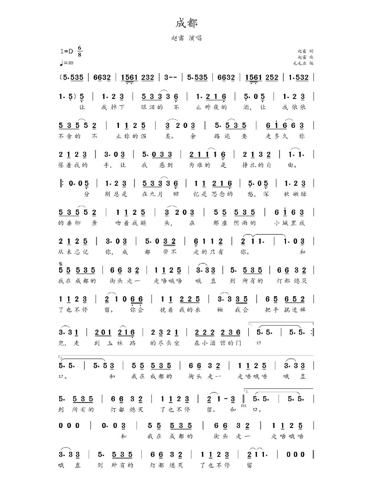 成都简谱-赵雷演唱-孙世彦制谱1