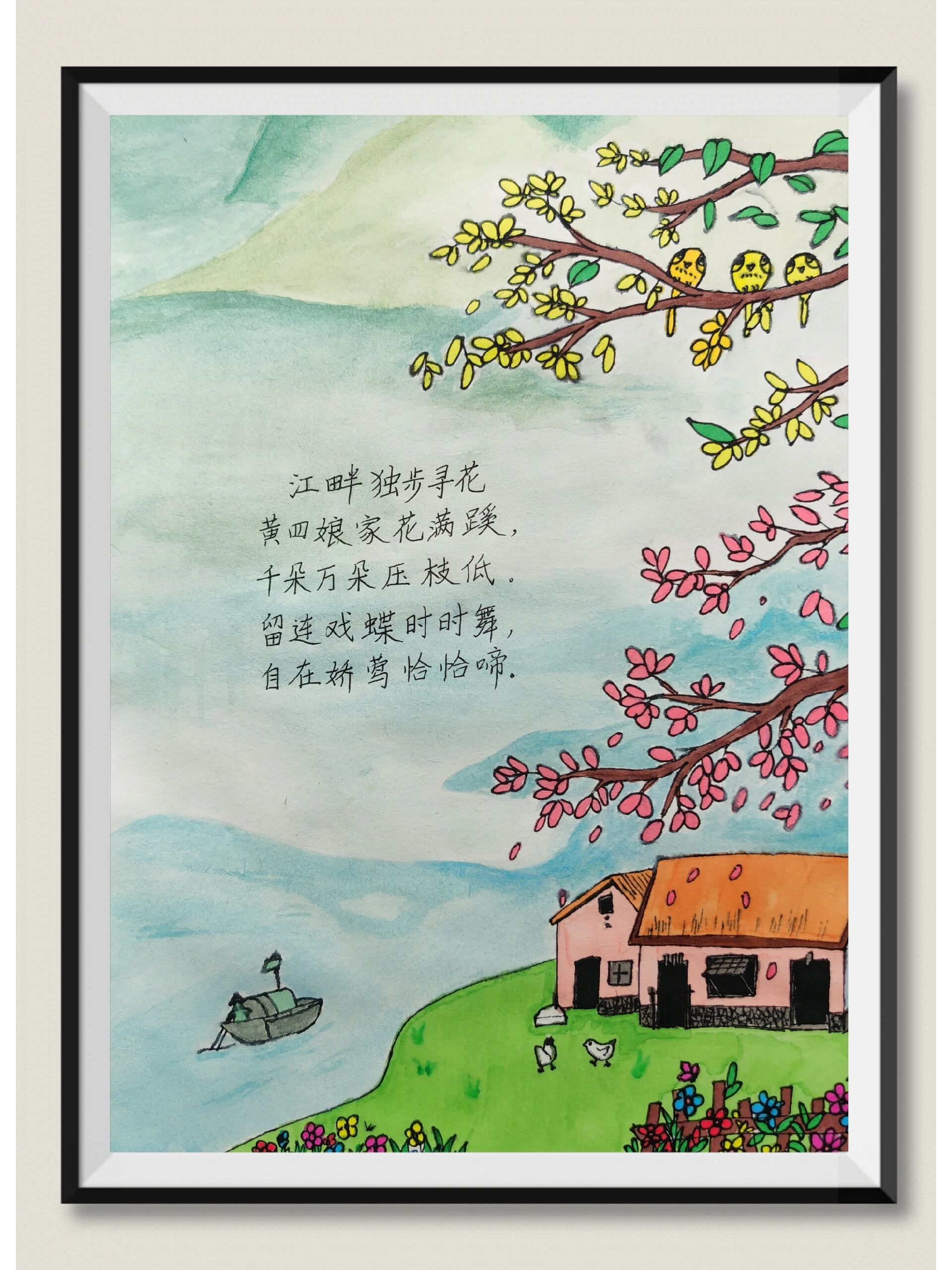 古诗配画手抄报《江畔独步寻花》 原创纯手绘古诗配画手抄报《江畔