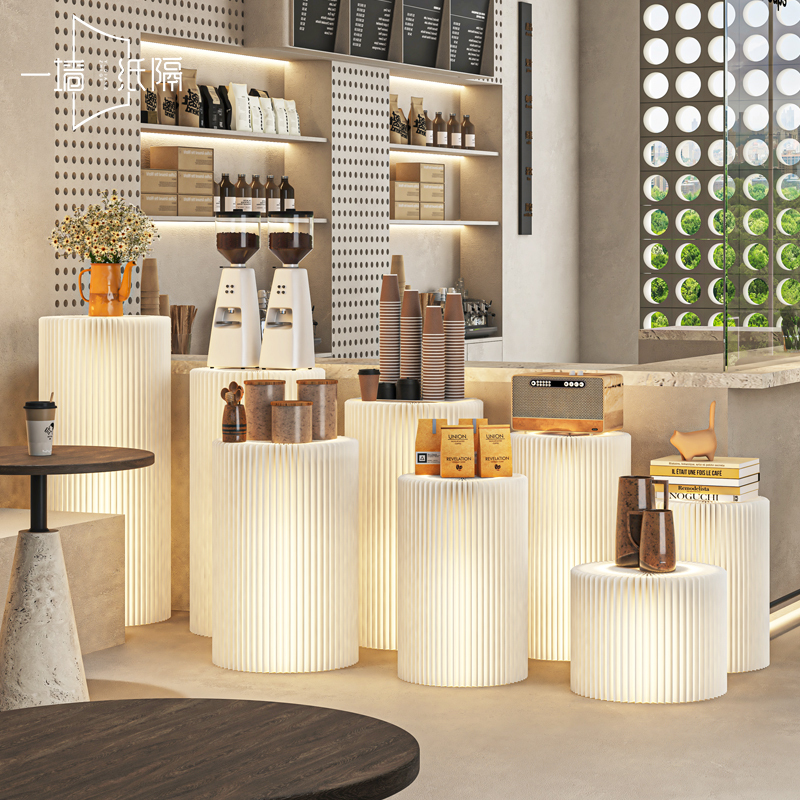 圆柱展示台产品中岛台流水台展台商场橱窗陈列台浮雕展会展览摆台常规