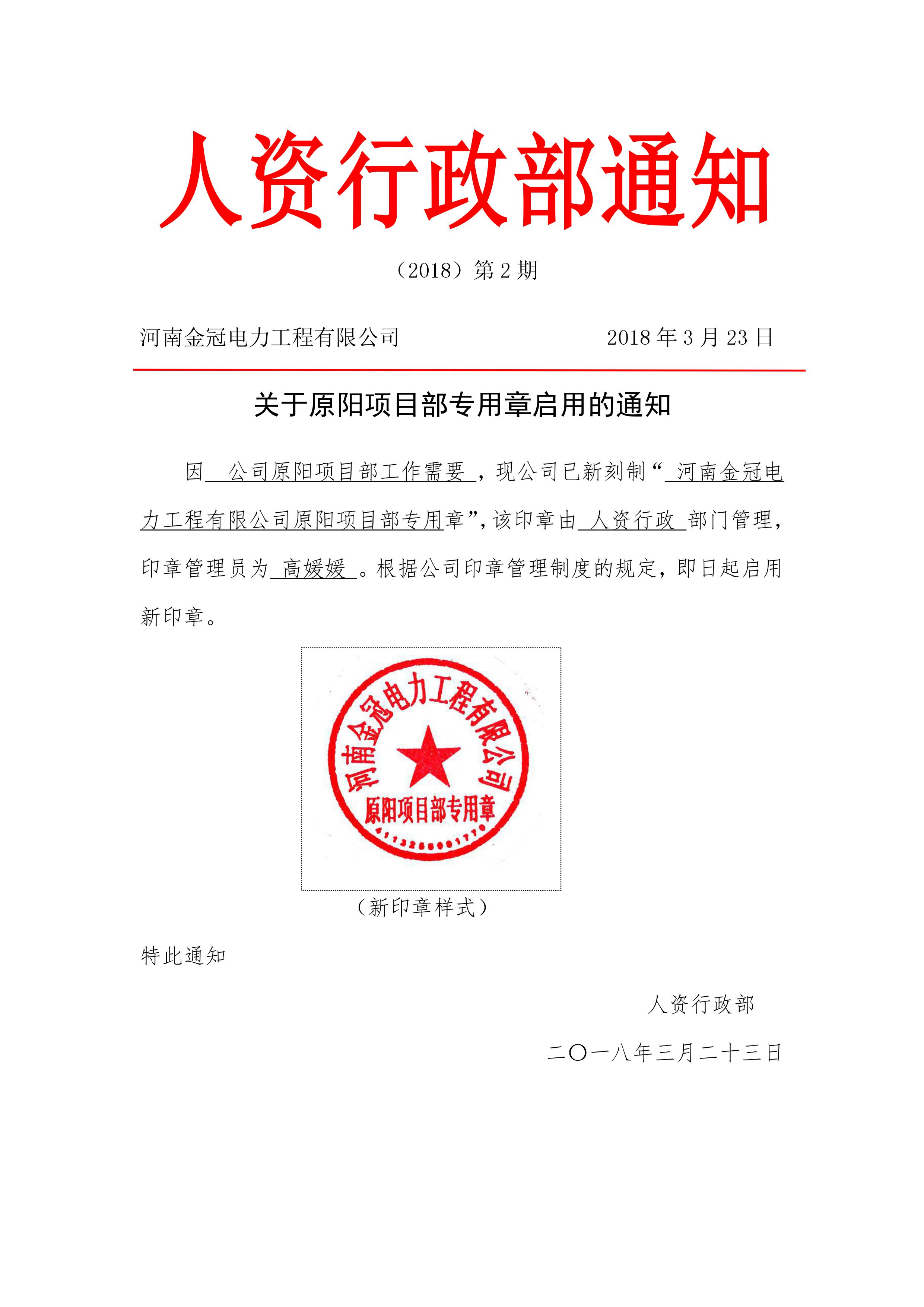 关于启用"江苏省丹阳经济开发区管理委员会项目审批专用章"的通知 |