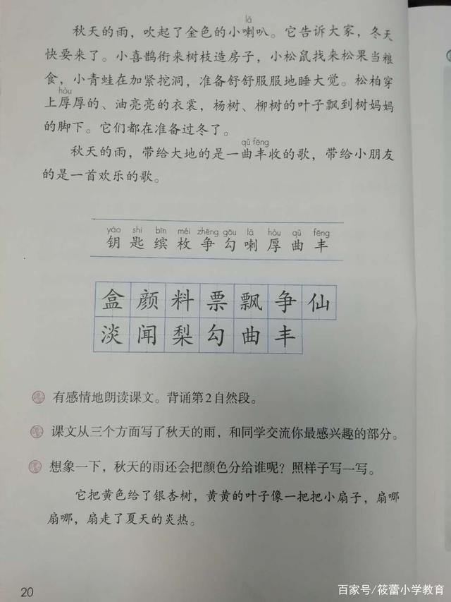 小学语文三年级上册《秋天的雨》