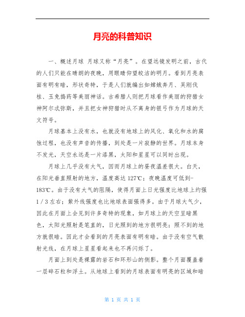 月亮的科普知识 一,概述月球 月球又称"月亮".