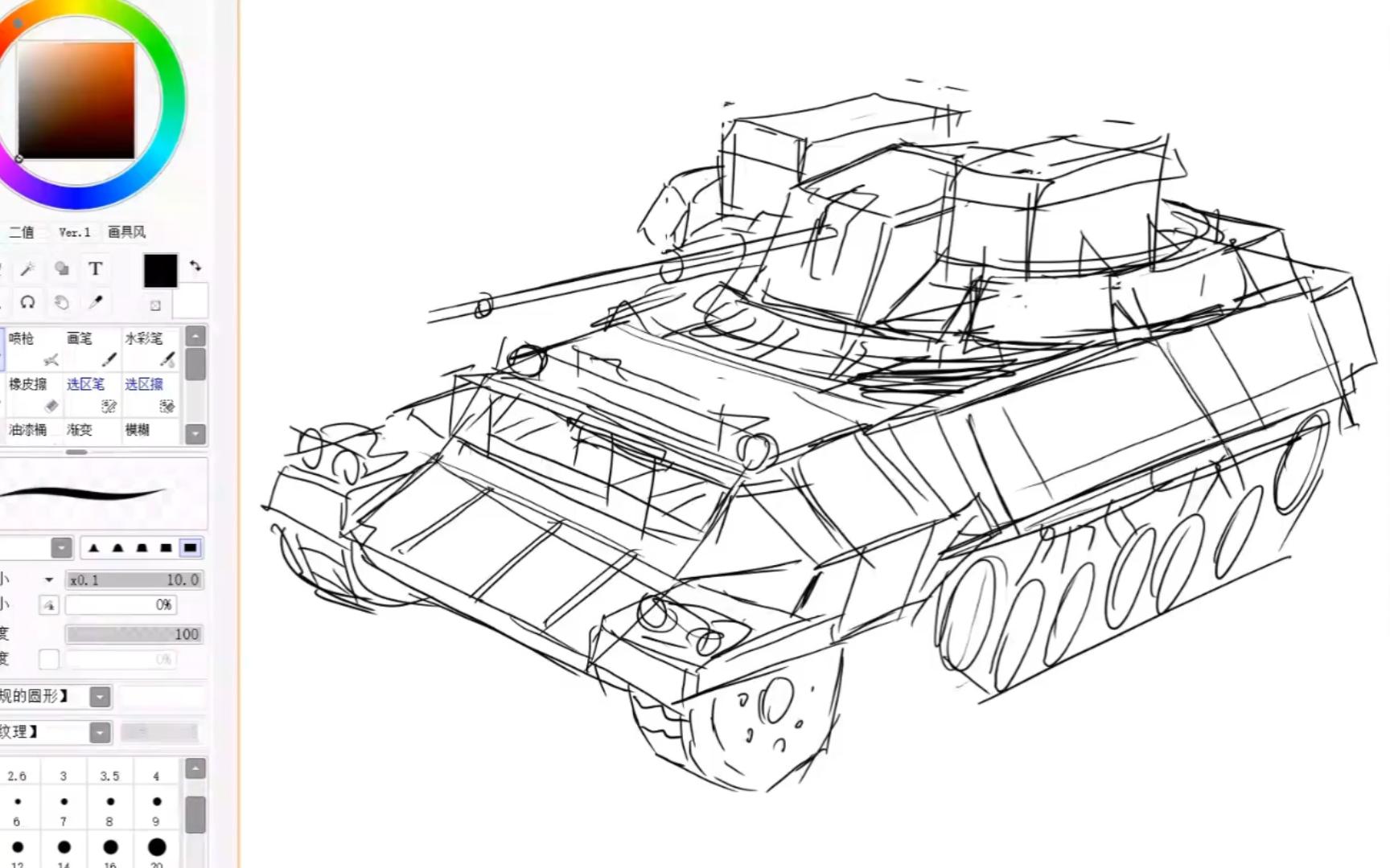 学画坦克战车装甲车汽车创意儿童画简笔画.