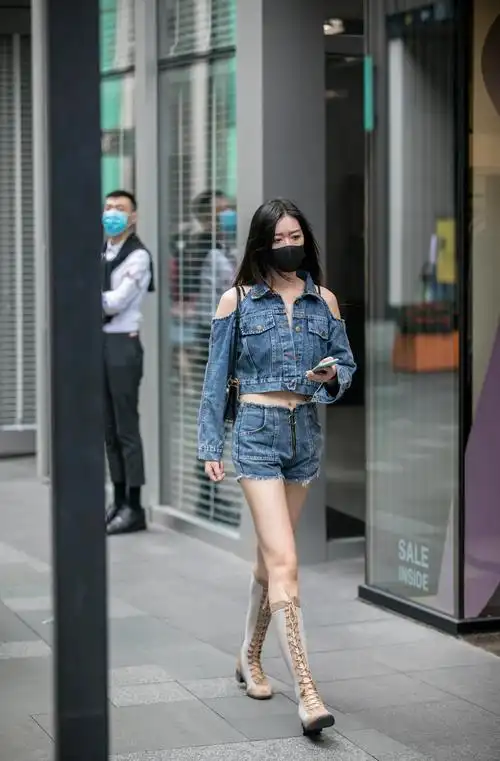 街拍牛仔包臀裙美女小姐姐穿搭.#街拍 #极品身材 - 抖音