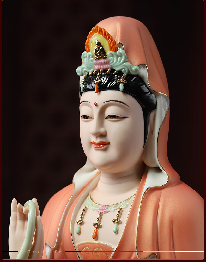本器德化陶瓷观音雕塑像摆件家居镇宅白瓷彩绘观世音菩萨佛像家用