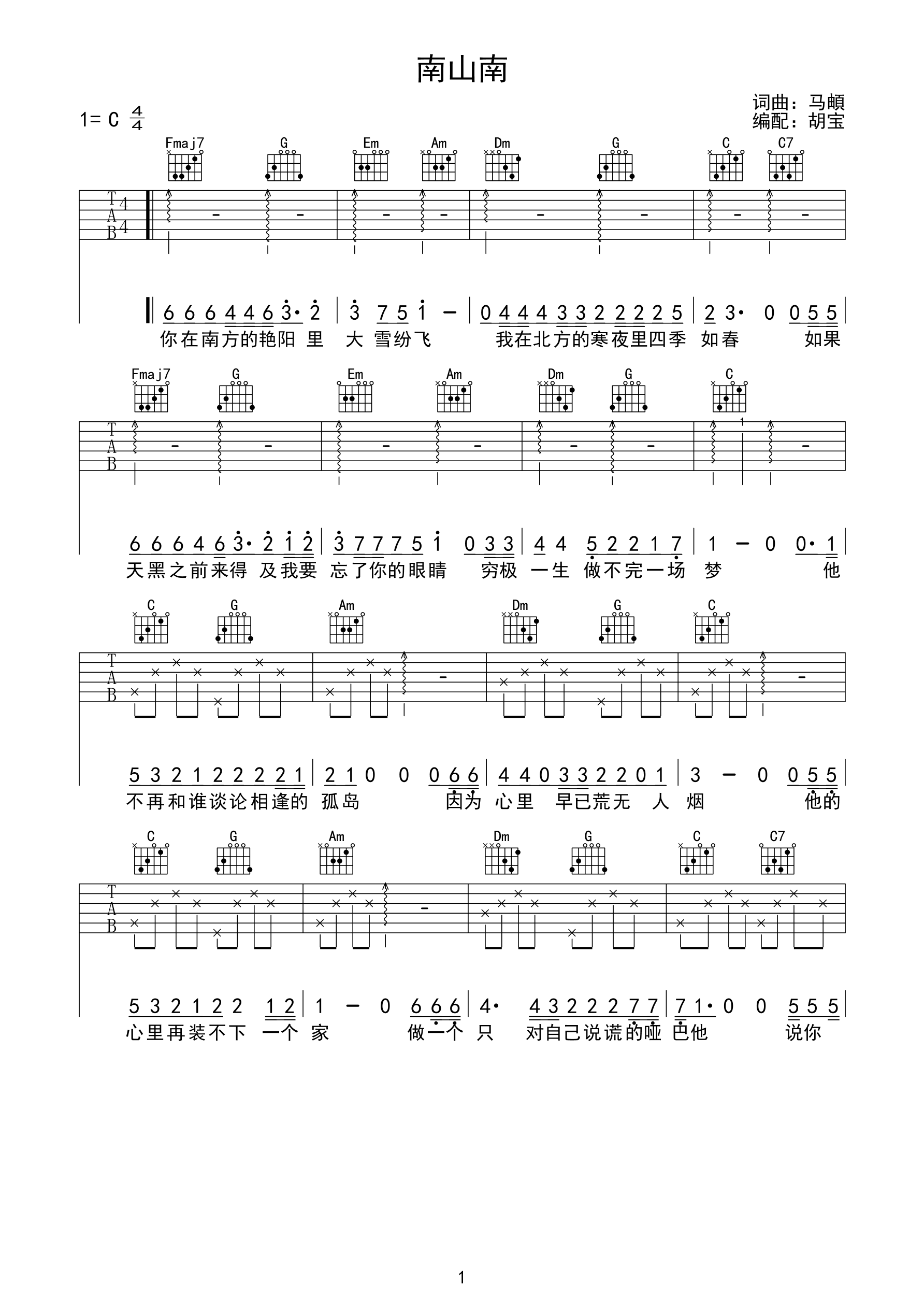 南山南-马頔b调六线pdf谱吉他谱-虫虫吉他谱免费下载