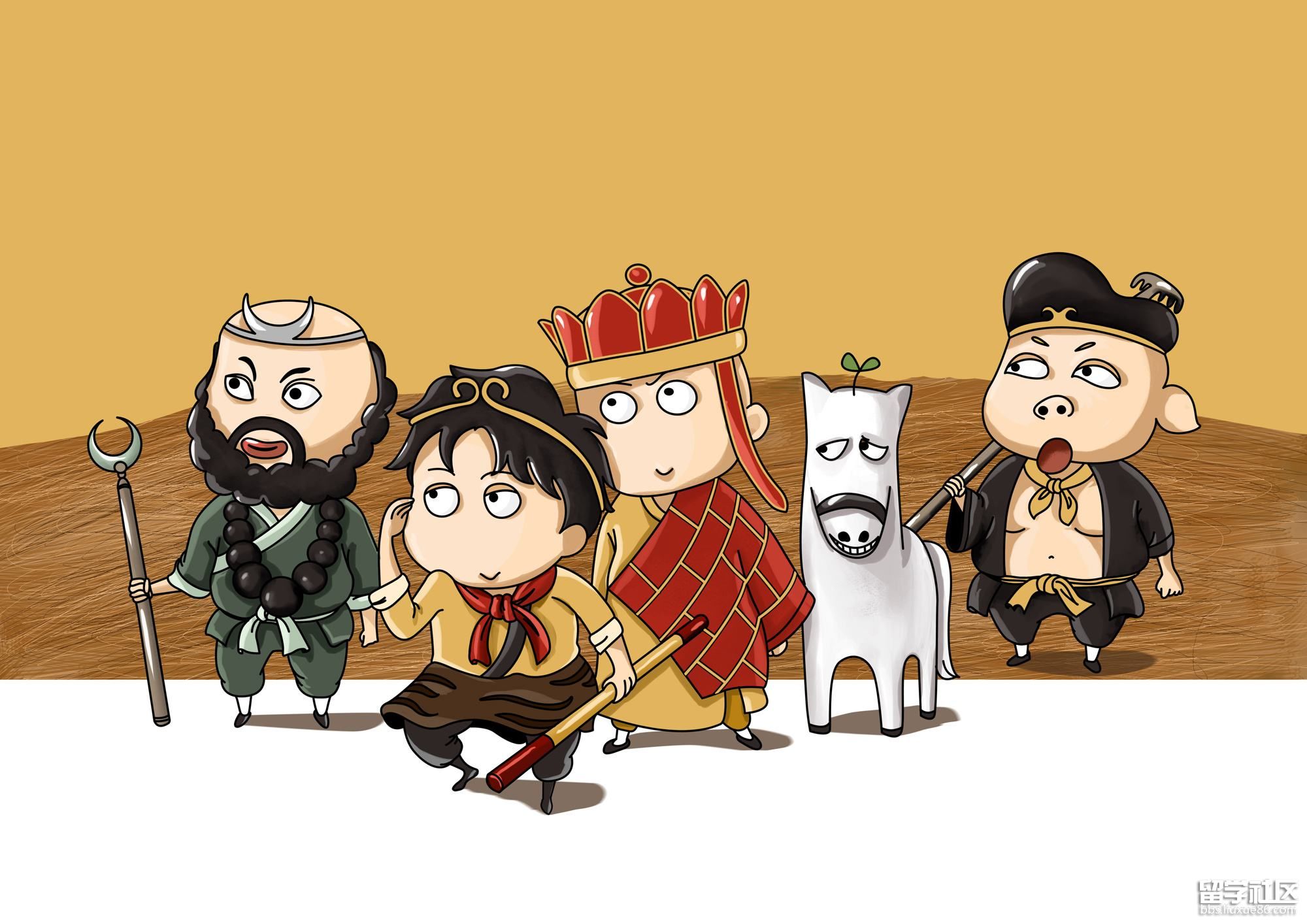 卡通西游记师徒背景素材