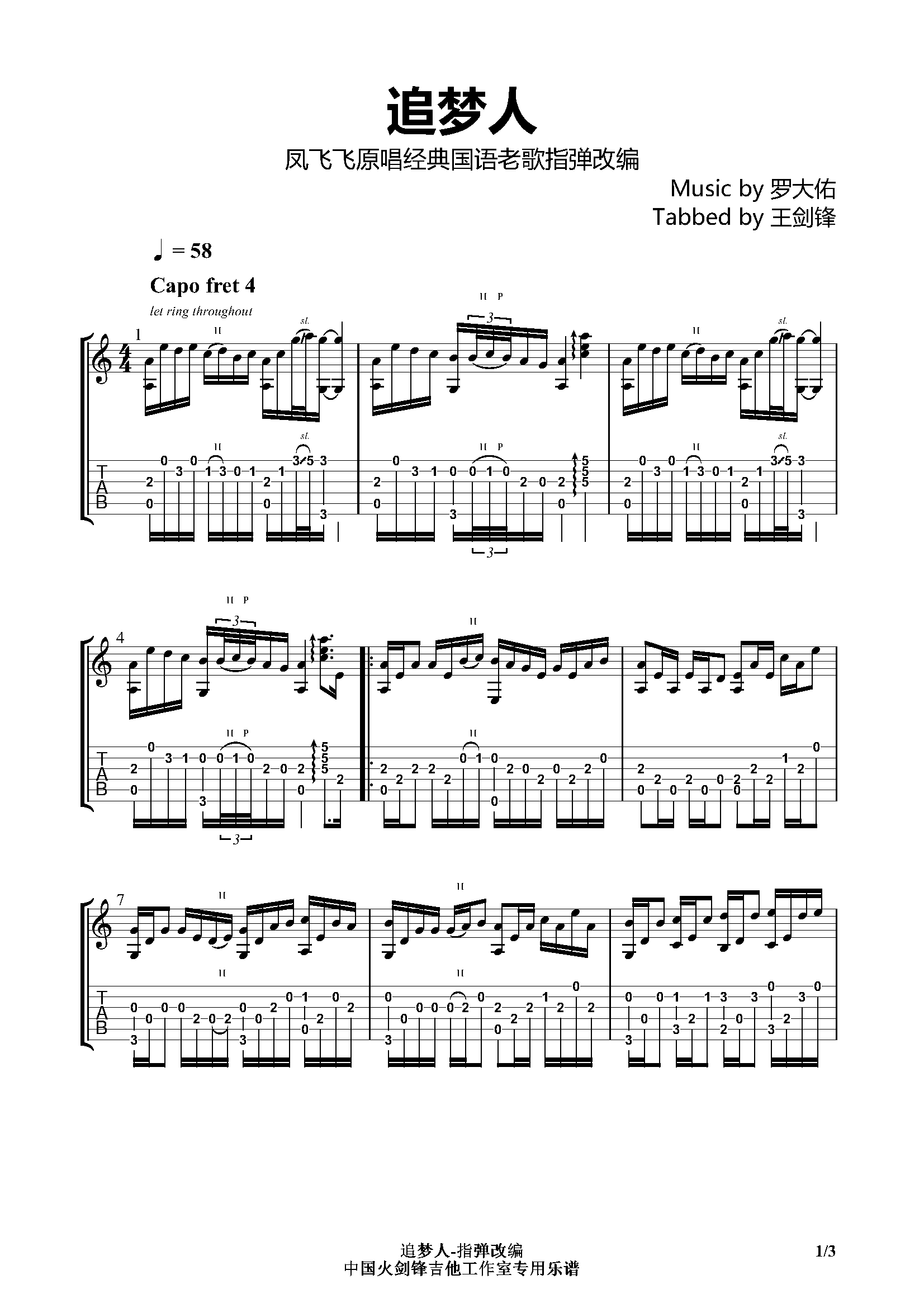 《追梦人》指弹吉他谱