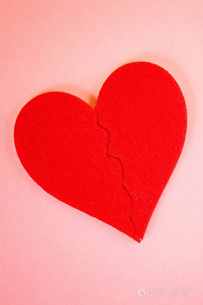 在粉红色的背景下红色的心碎成两半