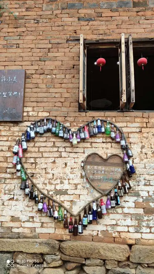 商铺老板用各式酒瓶拼成的爱心,独具匠心!