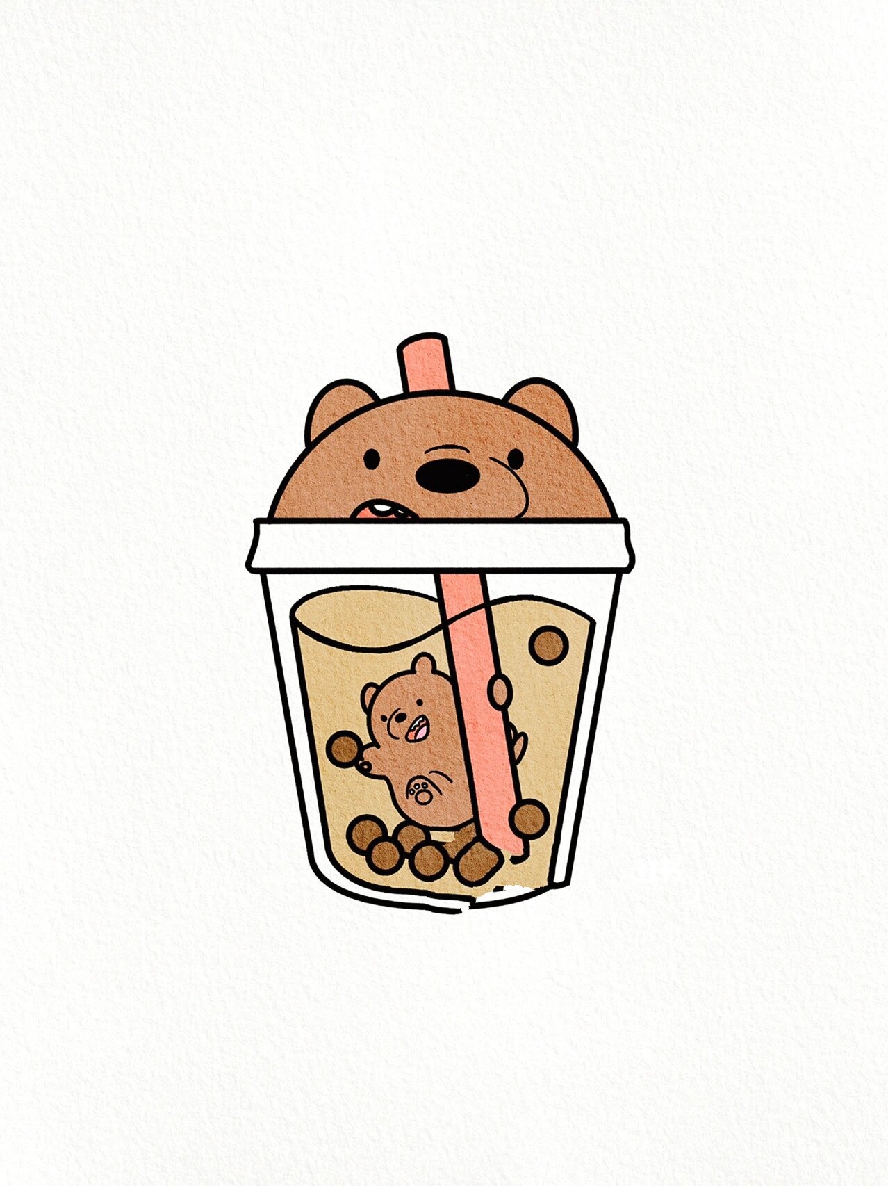 萌萌的三只熊系列奶茶|夏日饮品可爱简笔画