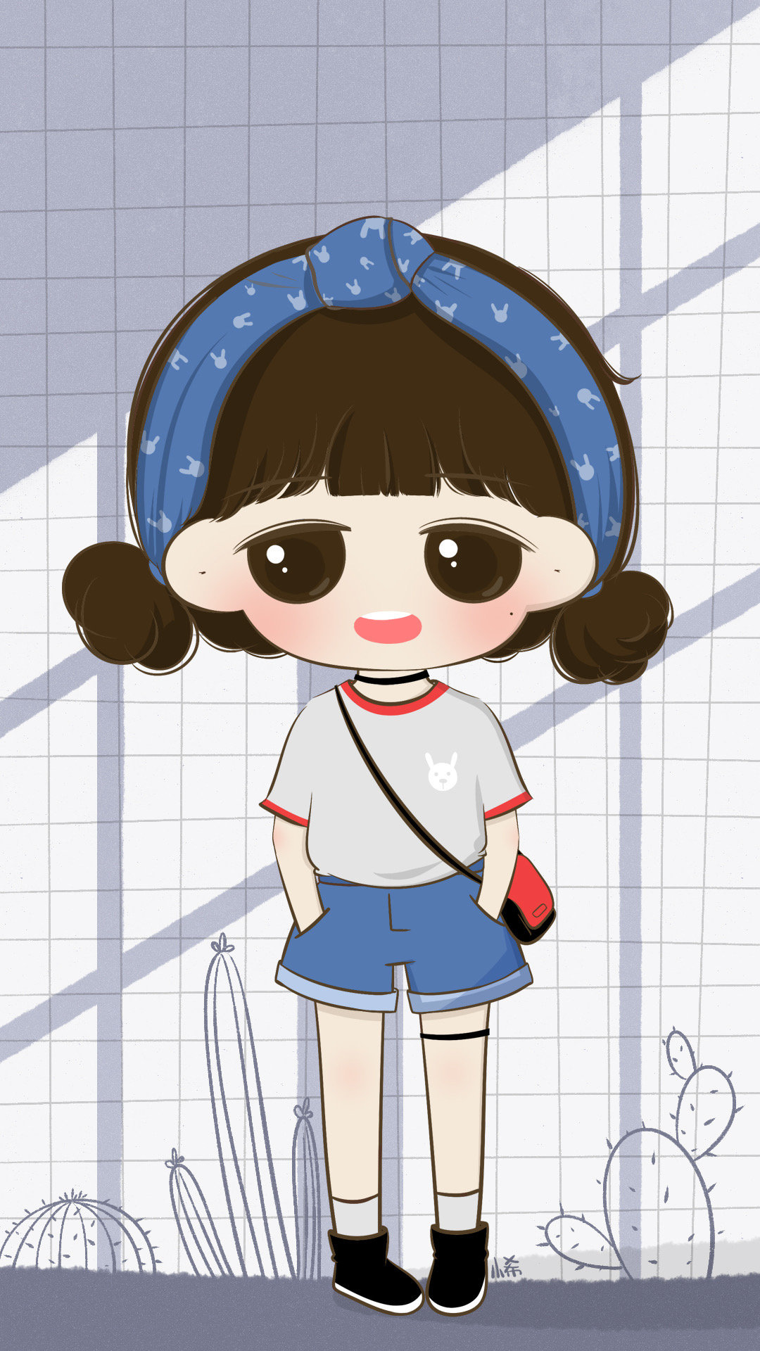 可爱萌系卡通女生插画手机壁纸