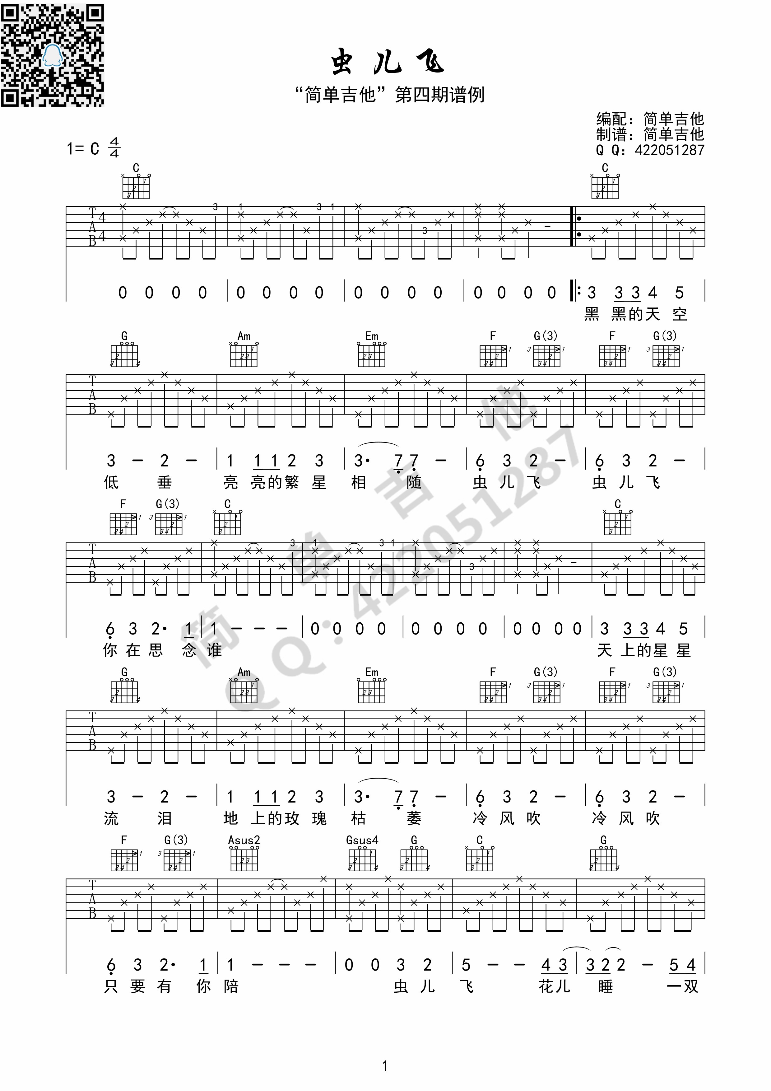 虫儿飞吉他谱(图片谱,弹唱)