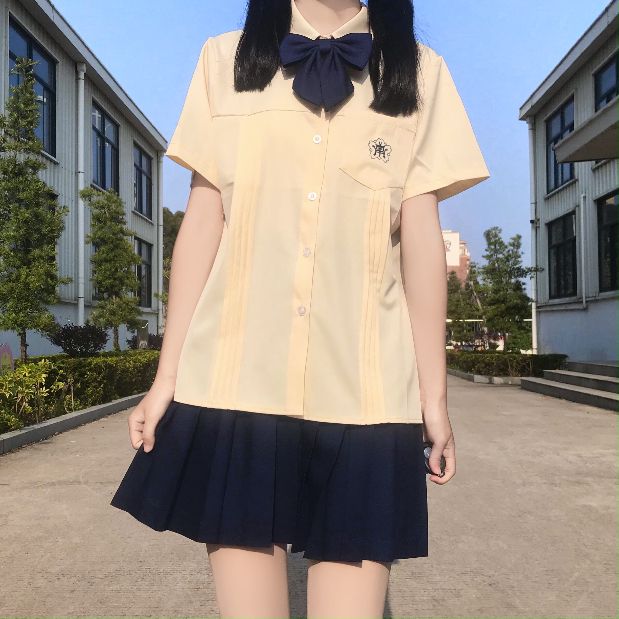泰国泰式校服jk制服学院风初中高中学生短袖衬衫夏季毕业班服套装