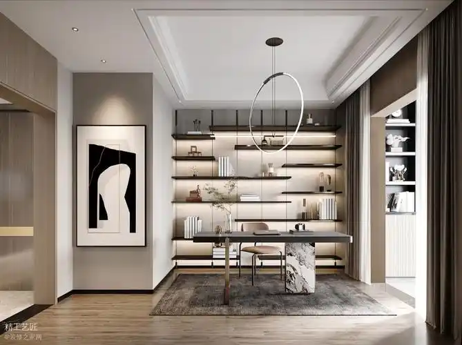 富春山居现代简约书房效果图
