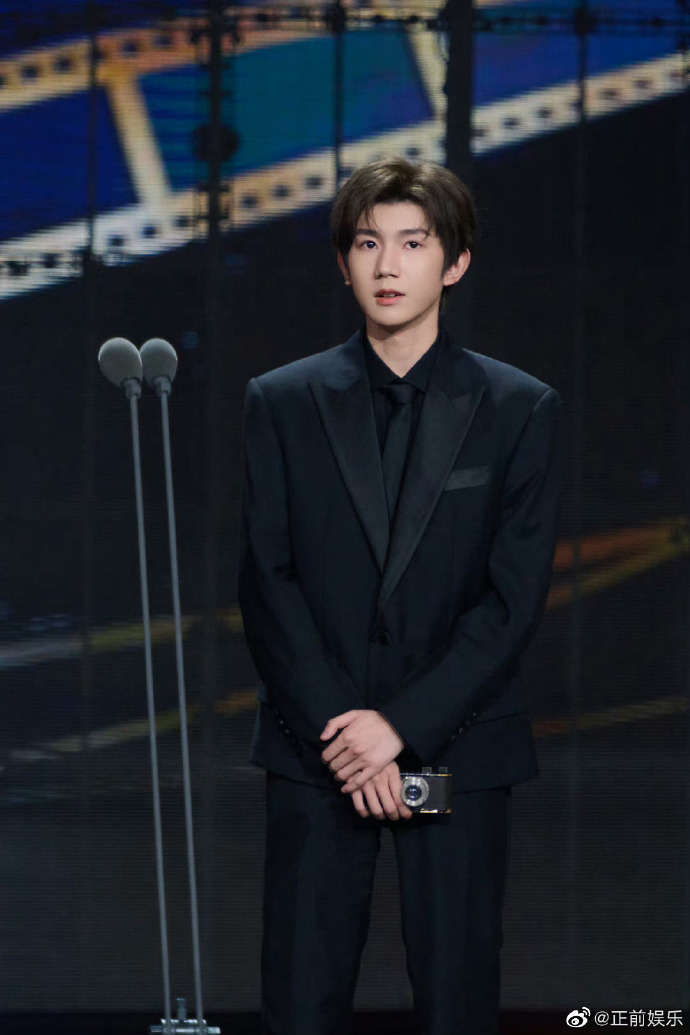 王##微博之夜#@tfboys-王源身着valentino ss23黑色西装亮相微博之夜