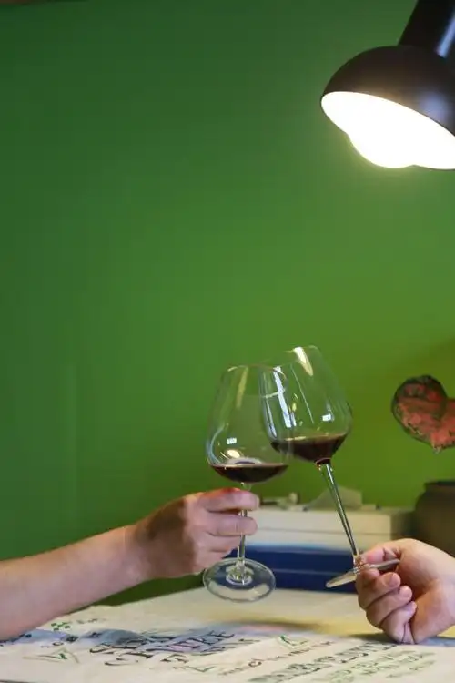 情侣节美丽的情侣在咖啡馆喝红酒, 浪漫的时刻.