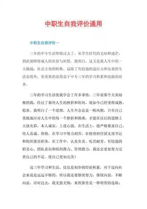 中职生自我评价通用doc