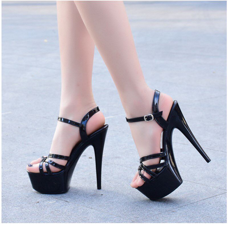 走秀高跟鞋模特高跟鞋细跟性感黑色防水台15cm恨天高超高跟凉鞋女15cm