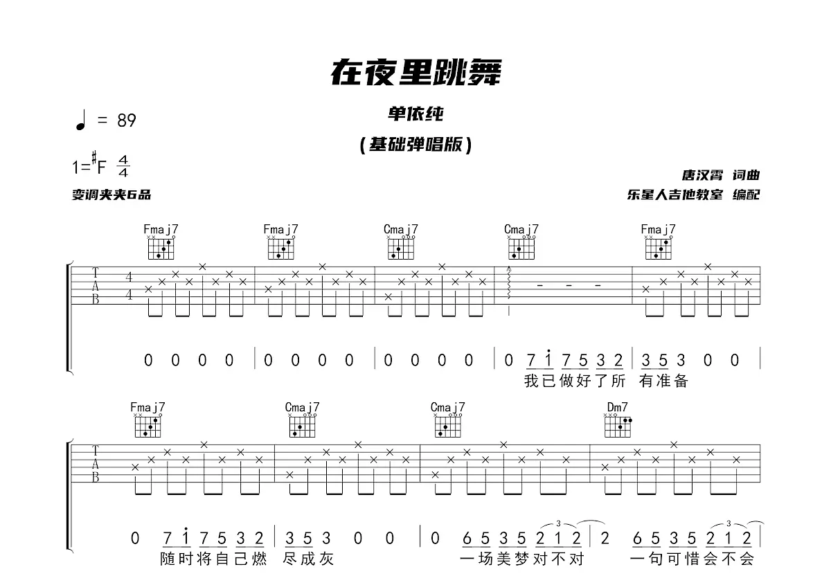 在夜里跳舞吉他谱-吉他曲谱-爱曲谱网