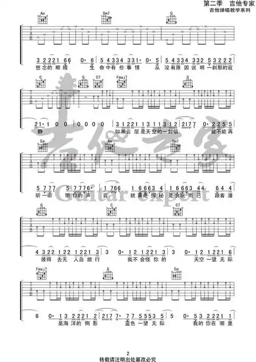 无人之岛吉他谱c调附前奏吉他专家编配任然