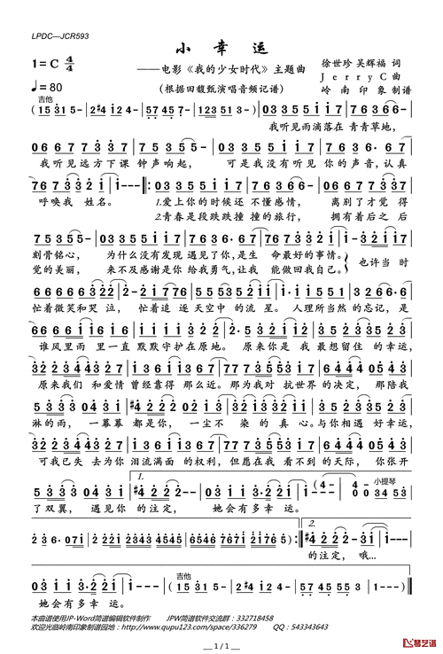 小幸运简谱(歌词)-田馥甄演唱-电影《我的少女时代》主题曲1