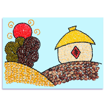 粘贴画材料包幼儿园手工diy种子画秋天丰收 丰收粮仓五谷材料包a4尺寸