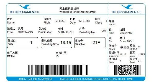 很清秀的登机牌