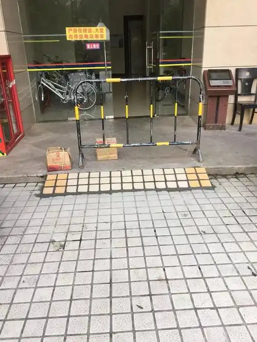 由于未经规范设计和施工,小区的无障碍坡道五花八门,图为20号楼门诳