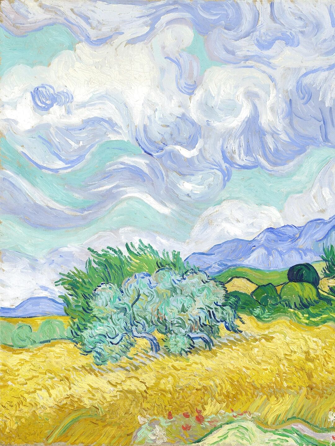 梵高《麦田与柏树》作品赏析