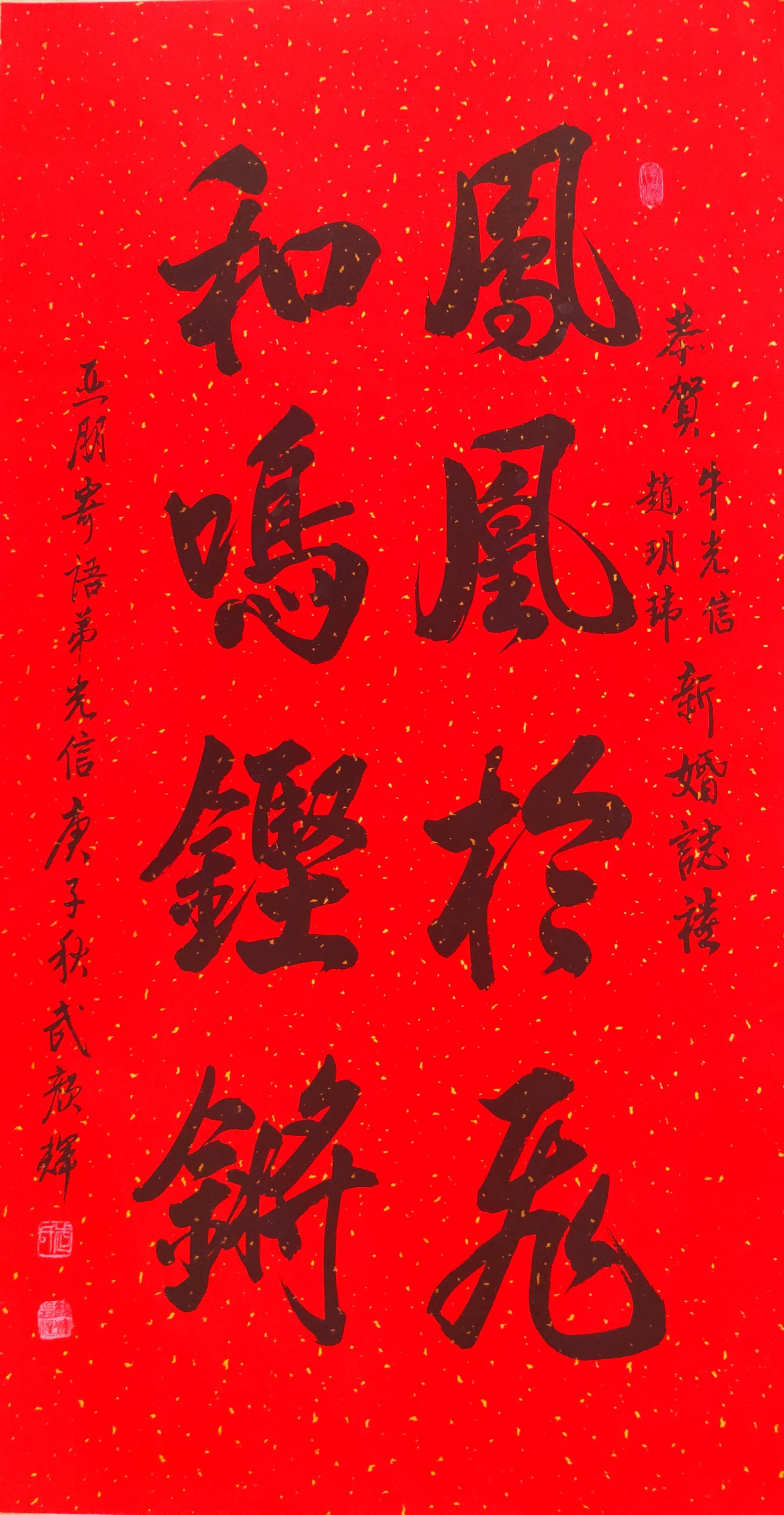 书法家武颜辉为新婚伉俪题写祝婚词,中国书法文化原来可以这么美!