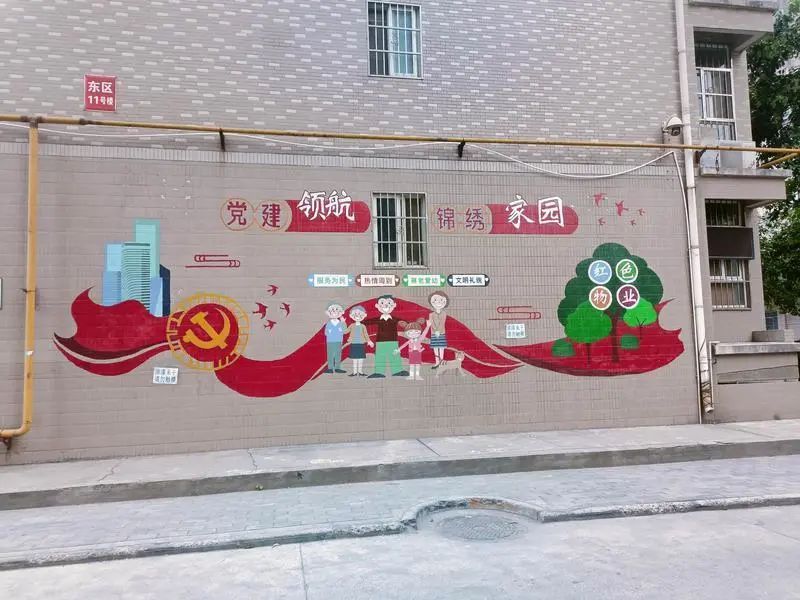 滨江苑社区红领工作站文化墙绘扮靓社区为创城助力添彩