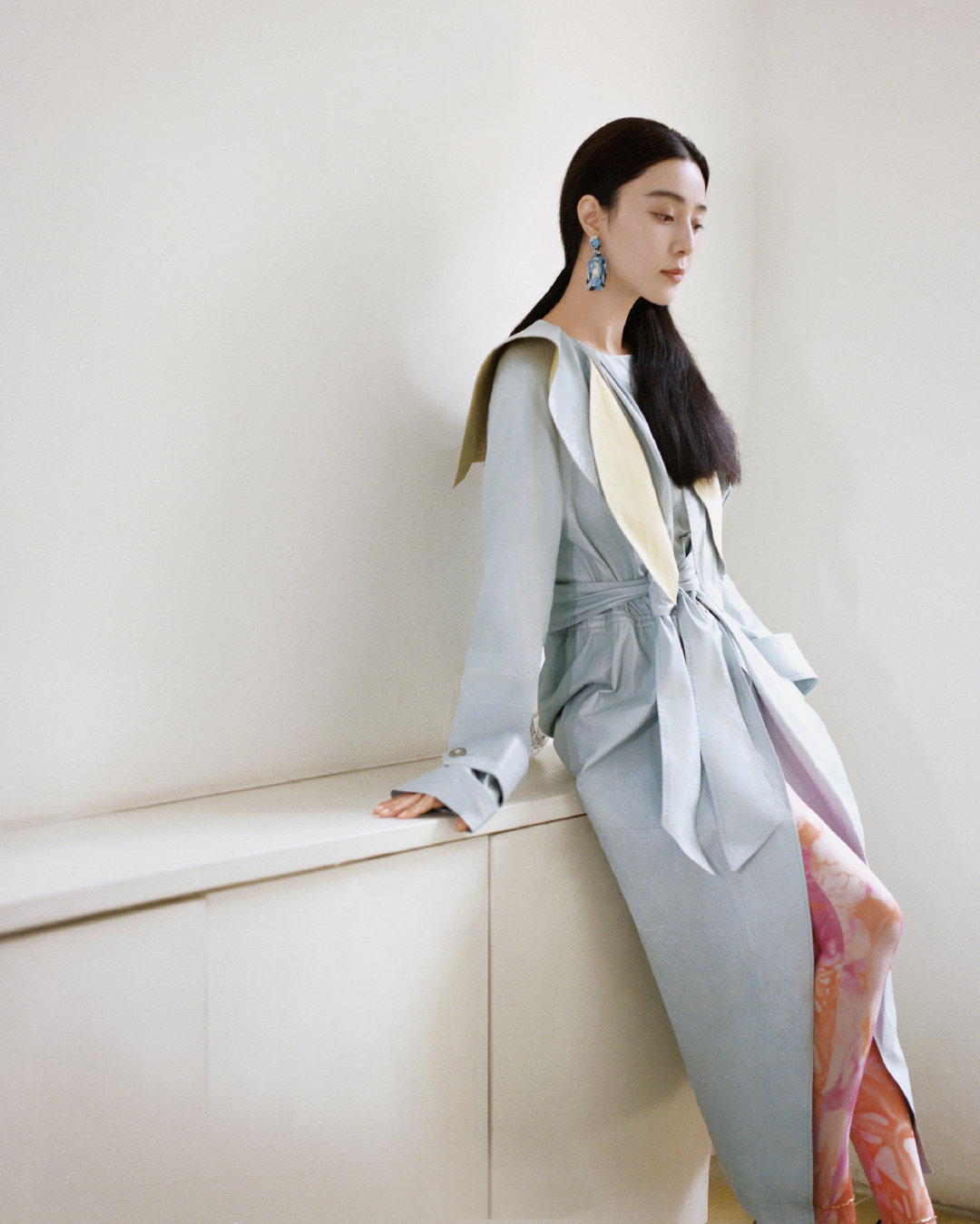 范冰冰身材高挑,这种长款的衬气场的穿搭其实很符合她的范爷气质,深色