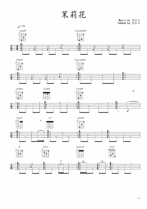 《茉莉花》尤克里里ukulele谱 指弹第1张