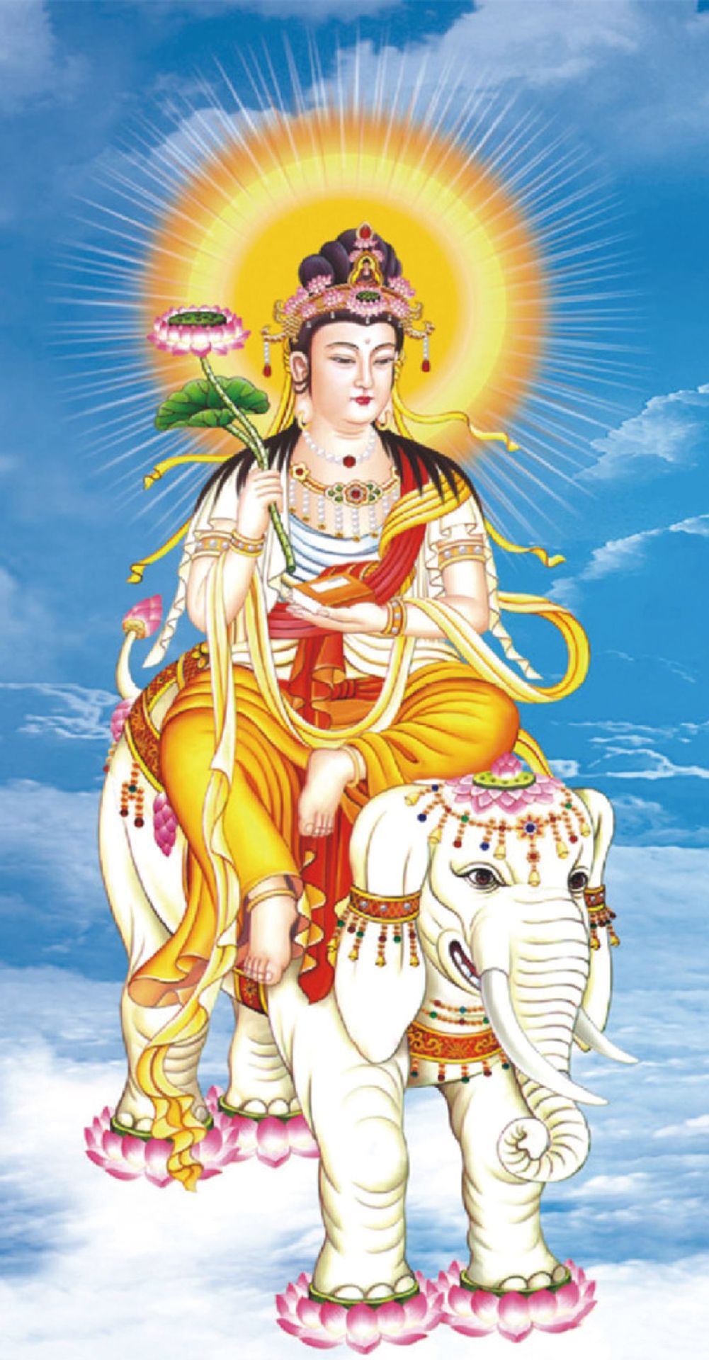 文殊普贤菩萨手持莲花荷花白色大象坐骑宗教人物印花十字绣