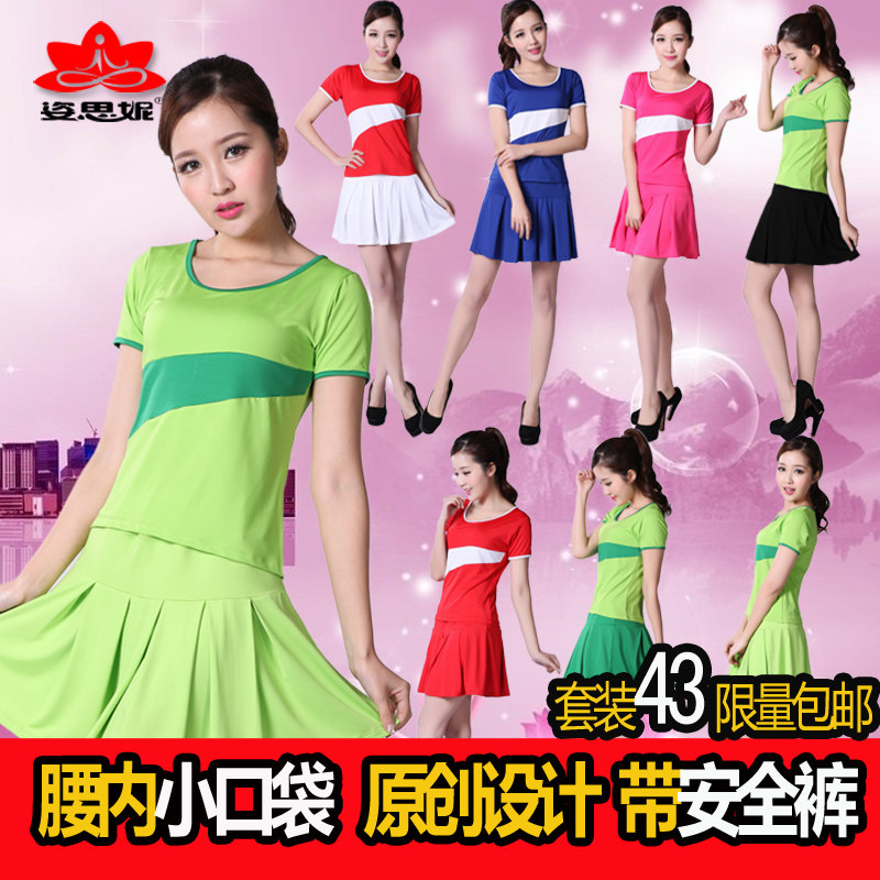 春夏广场舞服装夏小苹果舞蹈演出服广场舞运动衣服短裙套装半身裙