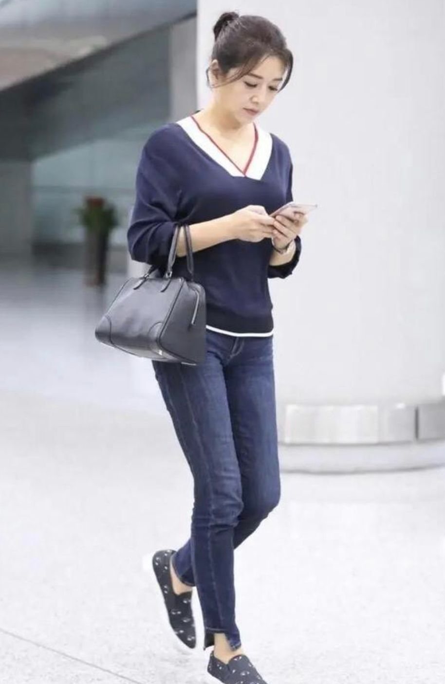 54岁江珊现身机场,扎马尾状态年轻,皮肤细嫩长腿抢镜