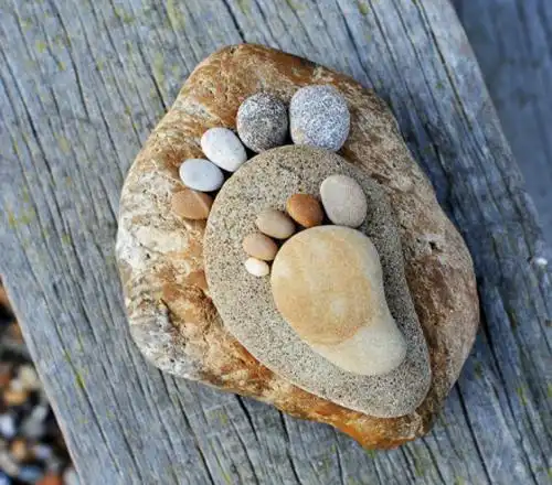 还是小动物,平面的,立体的,摆一摆各种造型,随意在地上拣几块小石头