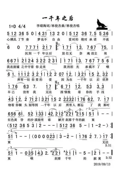 一千年以后歌谱