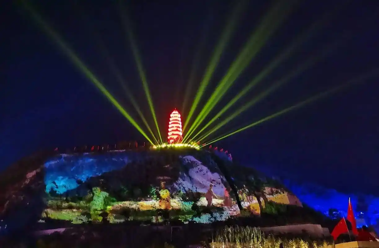 请点击输入图片描述音乐灯光秀表演前往南城门观赏宝塔山音乐灯光秀