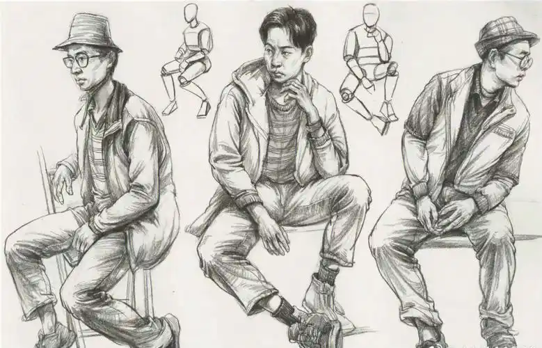 每日分享坐姿速写动态对临