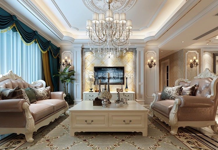 四居160平欧式风格客厅吊顶装修效果图