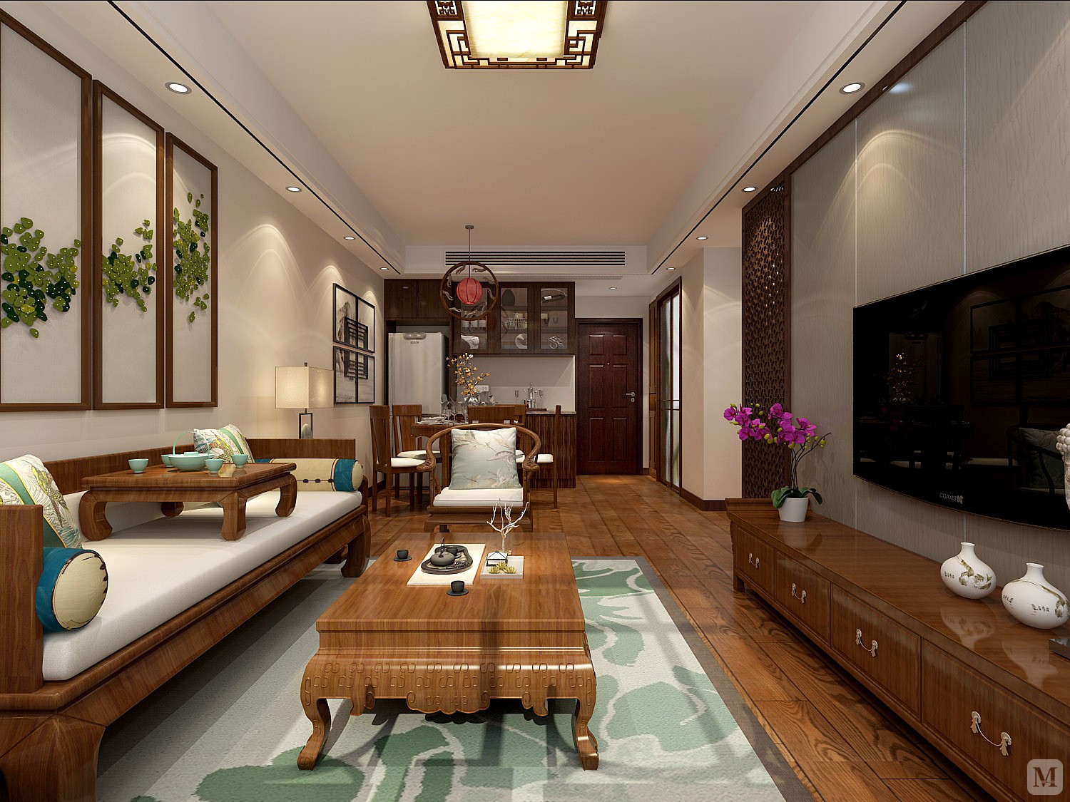 中式风格客餐厅装修设计效果图