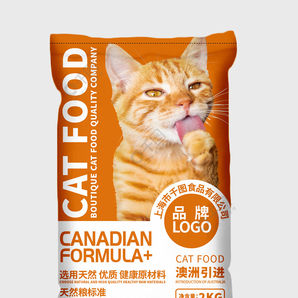 简约橙色猫粮包装袋
