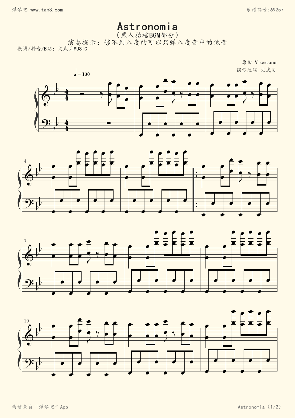黑人抬棺《astronomia》钢琴谱第1张
