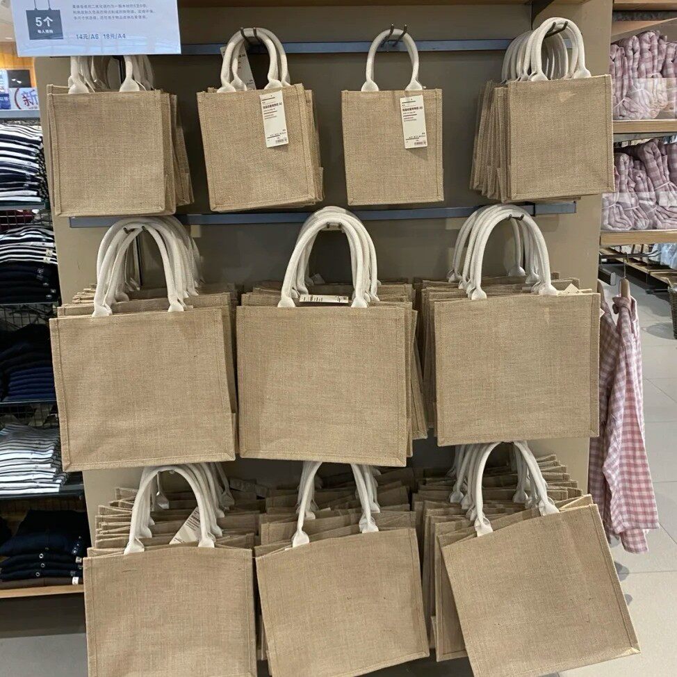muji无印良品麻布袋黄麻diy袋子帆布包学生手提袋拎书女麻袋定制