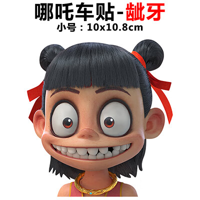 汽车贴纸汽r车贴纸创意个性划痕遮挡遮盖手账 哪吒车贴-龇牙小号10*10