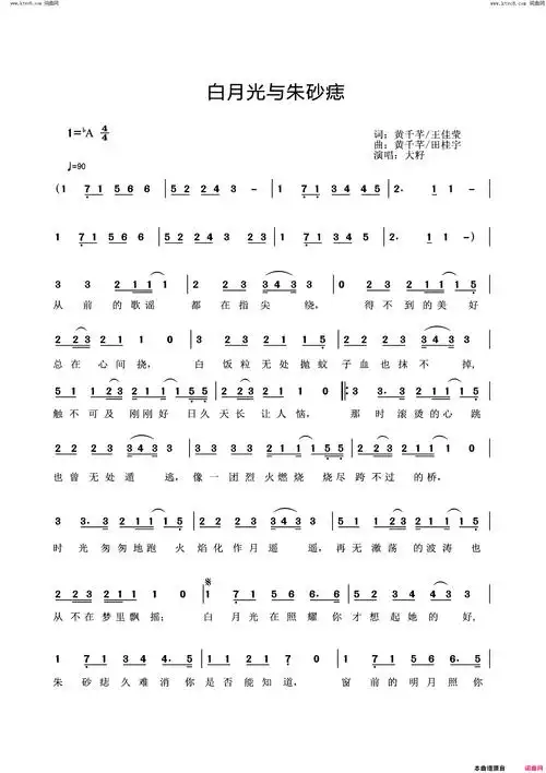 白月光与朱砂痣简谱-大籽演唱-黄千芊,王佳莹/黄千芊,王佳莹词曲1