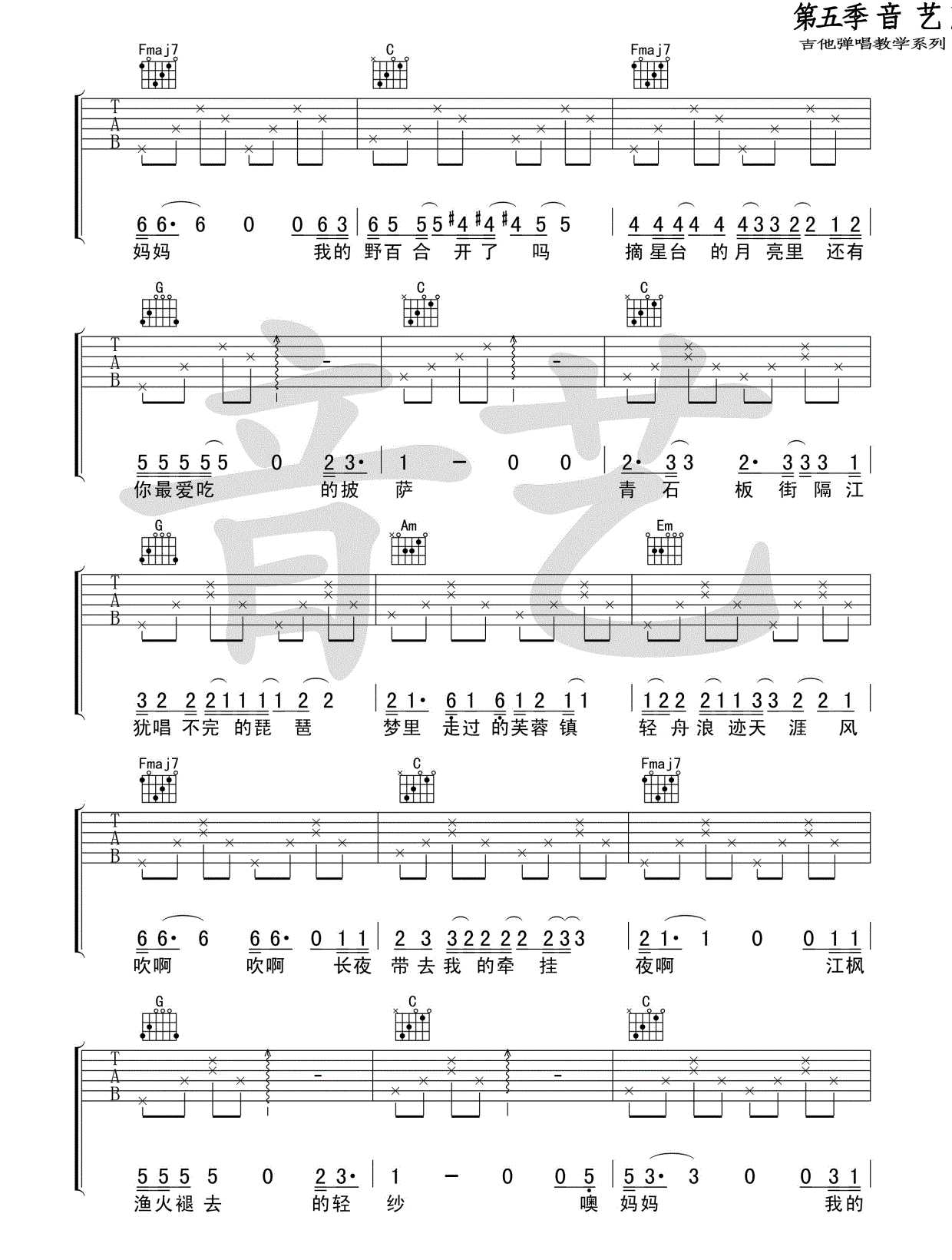 八月十五c调六线吉他谱-虫虫吉他谱免费下载