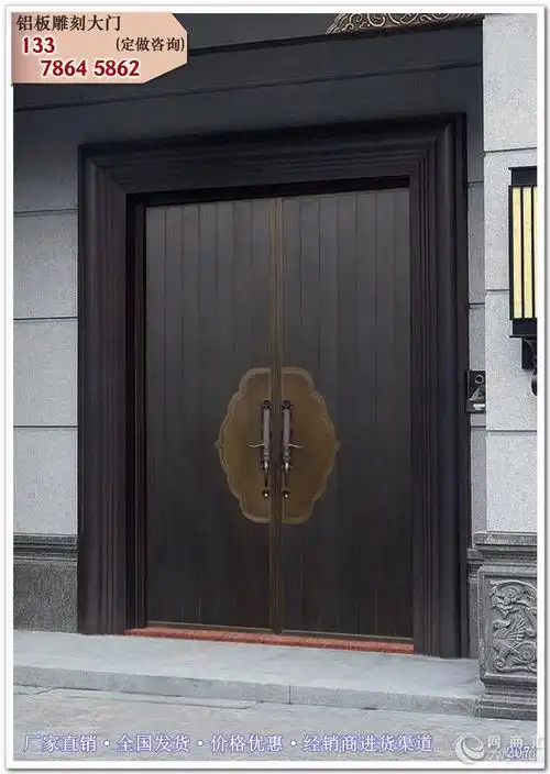 新中式别墅大门双开门农村庭院家用乡村自建房锌合金进户入户门